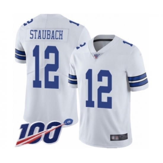 Men's Dallas Cowboys #12 Roger Staubach White Vapor Untouchable Limited Player 100th Season Football Jersey