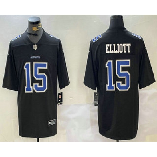 >Men's Dallas Cowboys #15 Ezekiel Elliott Black Throwback Vapor Limited Stitched Jersey
