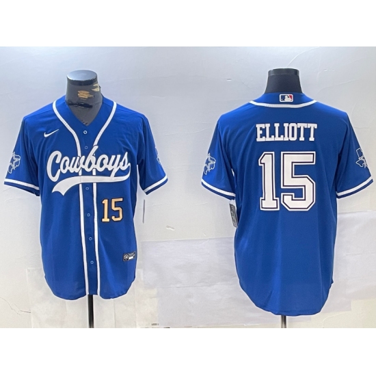 Men's Dallas Cowboys #15 Ezekiel Elliott Light Blue Cool Base Stitched Baseball Jerseys