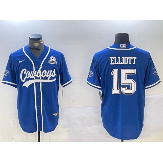 Men's Dallas Cowboys #15 Ezekiel Elliott Light Blue With 1960 Cool Base Stitched Baseball Jersey