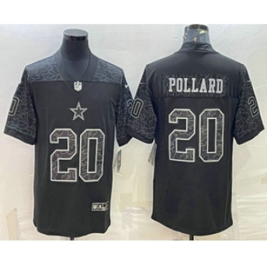 >Men's Dallas Cowboys #20 Tony Pollard Black Reflective Limited Stitched Football Jersey