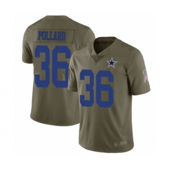 >Men's Dallas Cowboys #36 Tony Pollard Limited Olive 2017 Salute to Service Football Jersey