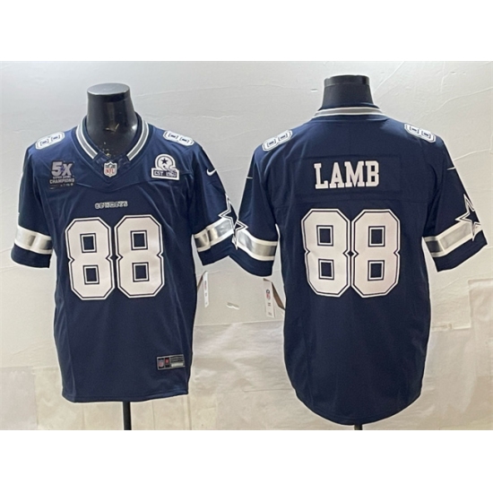 Men's Dallas Cowboys #88 CeeDee Lamb Navy F.U.S.E. With 5x Super Bowl Champions & Established In 1960 Vapor Limited Stitched Football Jersey