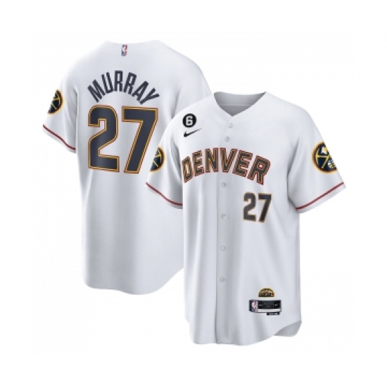 Men's Denver Nuggets #27 Jamal Murray White With No.6 Cool Base Stitched Jersey