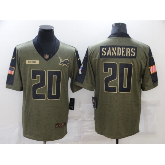 >Men's Detroit Lions #20 Barry Sanders Nike Olive 2021 Salute To Service Limited Player Jersey