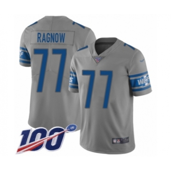 Men's Detroit Lions #77 Frank Ragnow Limited Gray Inverted Legend 100th Season Football Jersey