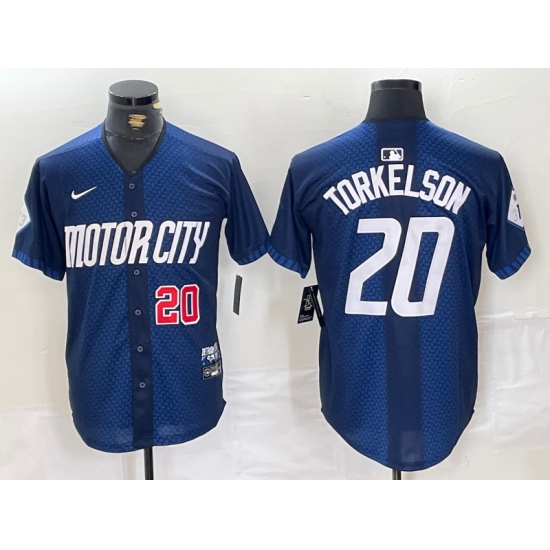 >Men's Detroit Tigers #20 Spencer Torkelson Number 2024 Navy City Connect Cool Base Limited Stitched Jersey1