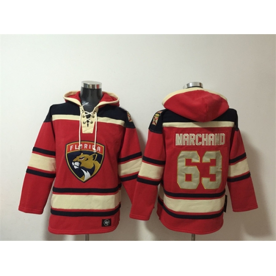 Men's Florida Panthers #63 Brad Marchand Red Lace-Up Pullover Hoodie