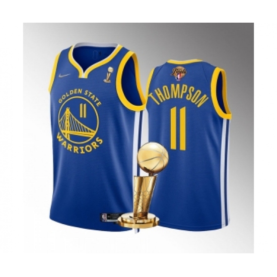 Men's Golden State Warriors #11 Klay Thompson Royal 2022 NBA Finals Champions Stitched Jersey