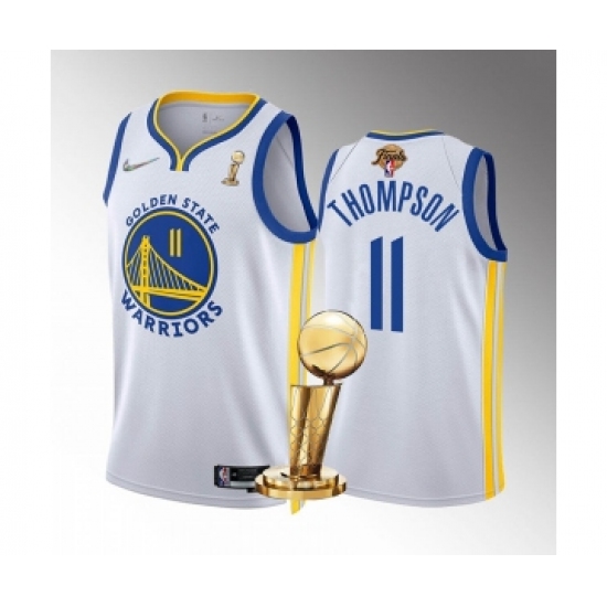 Men's Golden State Warriors #11 Klay Thompson White 2022 NBA Finals Champions Stitched Jersey
