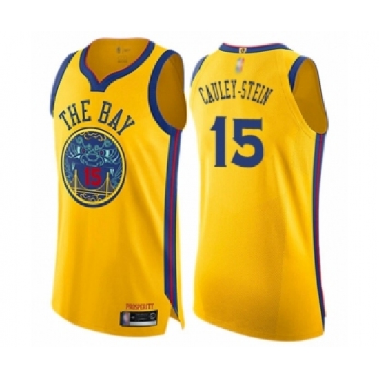Men's Golden State Warriors #15 Willie Cauley-Stein Authentic Gold Basketball Jersey - City Edition