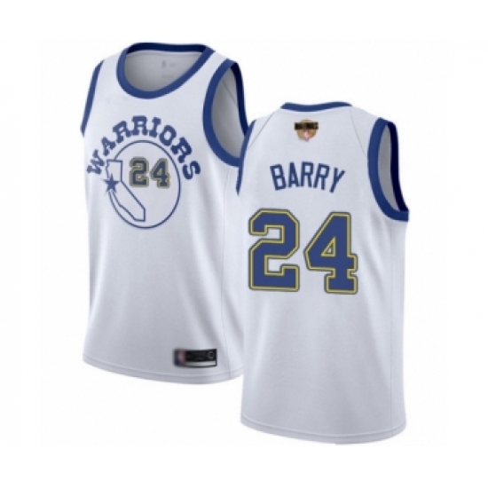 >Men's Golden State Warriors #24 Rick Barry Swingman White Hardwood Classics 2019 Basketball Finals Bound Basketball Jersey
