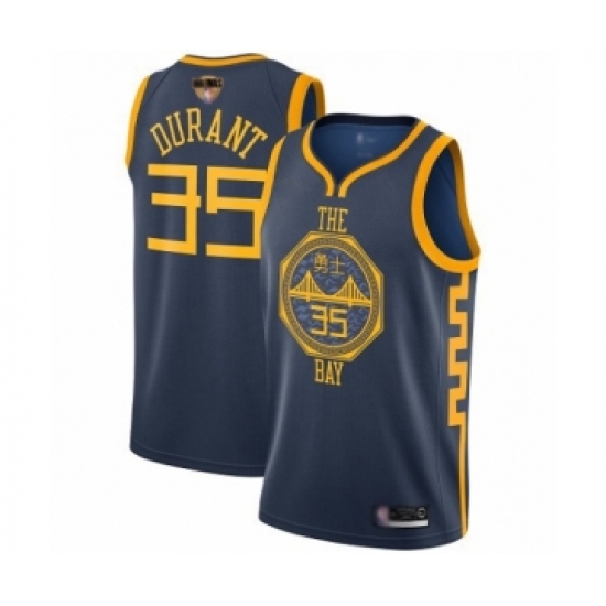 >Men's Golden State Warriors #35 Kevin Durant Swingman Navy Blue Basketball 2019 Basketball Finals Bound Jersey - City Edition