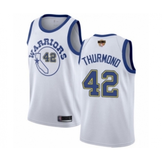 >Men's Golden State Warriors #42 Nate Thurmond Swingman White Hardwood Classics 2019 Basketball Finals Bound Basketball Jersey