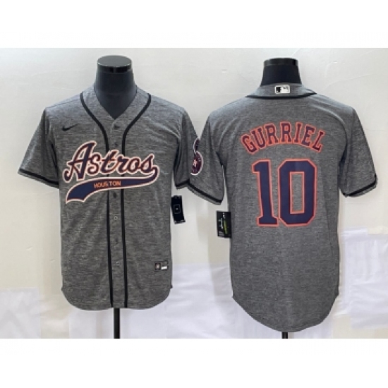 >Men's Houston Astros #10 Yuli Gurriel Grey Gridiron Cool Base Stitched Baseball Jersey1