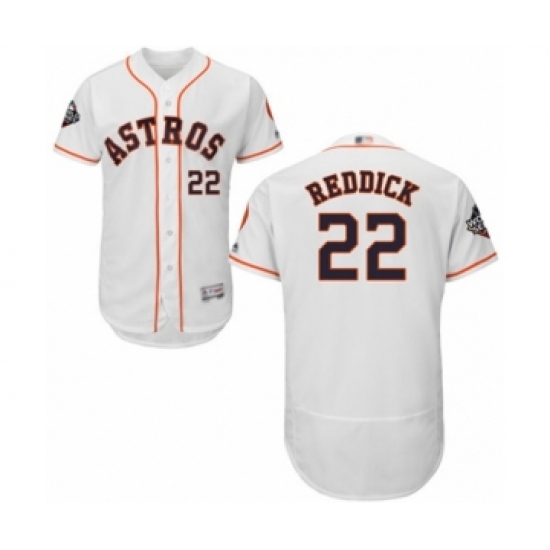 Men's Houston Astros #22 Josh Reddick White Home Flex Base Authentic Collection 2019 World Series Bound Baseball Jersey