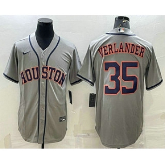 Men's Nike Houston Astros #35 Justin Verlander Gray Road Stitched Baseball Jersey