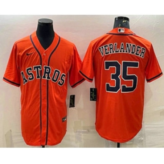 >Men's Houston Astros #35 Justin Verlander Orange Stitched MLB Cool Base Nike Jersey