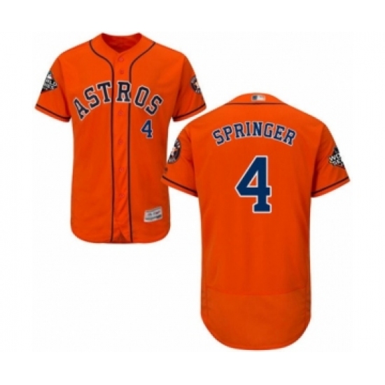 Men's Houston Astros #4 George Springer Orange Alternate Flex Base Authentic Collection 2019 World Series Bound Baseball Jersey