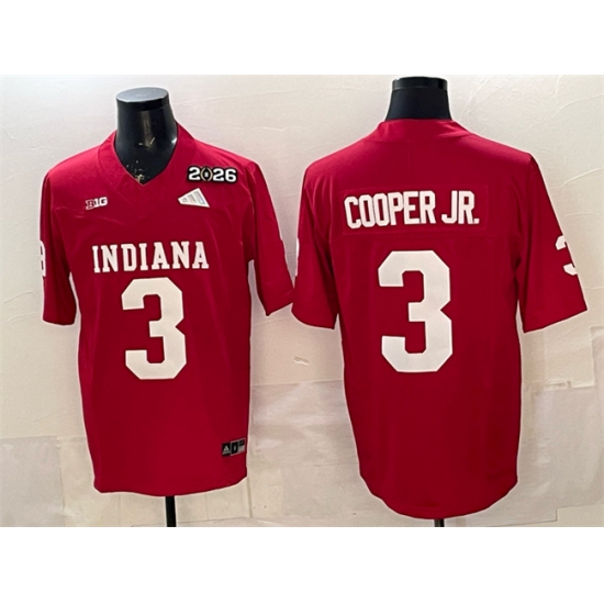 >Men's Indiana Hoosiers #3 Omar Cooper Jr. Red F.U.S.E. 2026 Patch Stitched Football Jersey