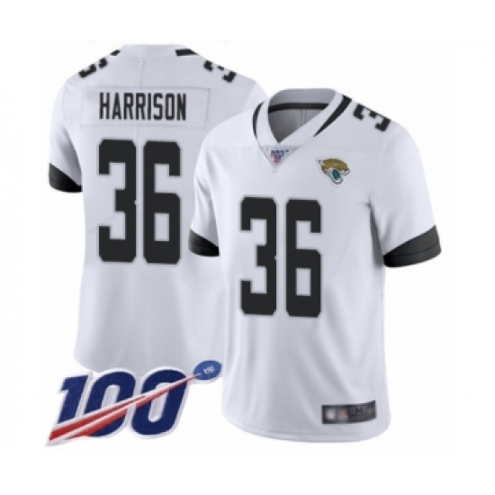 >Men's Jacksonville Jaguars #36 Ronnie Harrison White Vapor Untouchable Limited Player 100th Season Football Jersey