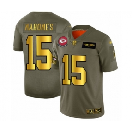 Men's Kansas City Chiefs #15 Patrick Mahomes II Olive Gold 2019 Salute to Service Limited Player Football Jersey