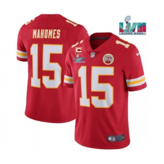 Men’s Kansas City Chiefs #15 Patrick Mahomes Red Super Bowl LVII Patch And 4-star C Patch Vapor Untouchable Limited Stitched Jersey