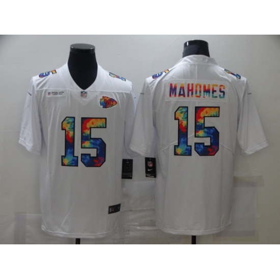 Men's Kansas City Chiefs #15 Patrick Mahomes White Rainbow Version Nike Limited Jersey