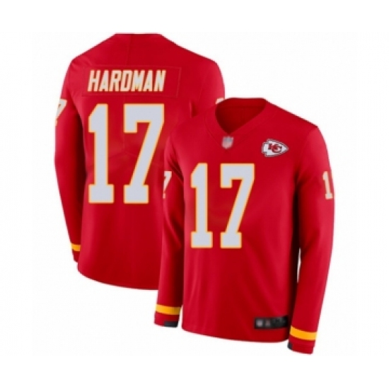 >Men's Kansas City Chiefs #17 Mecole Hardman Limited Red Therma Long Sleeve Football Jersey