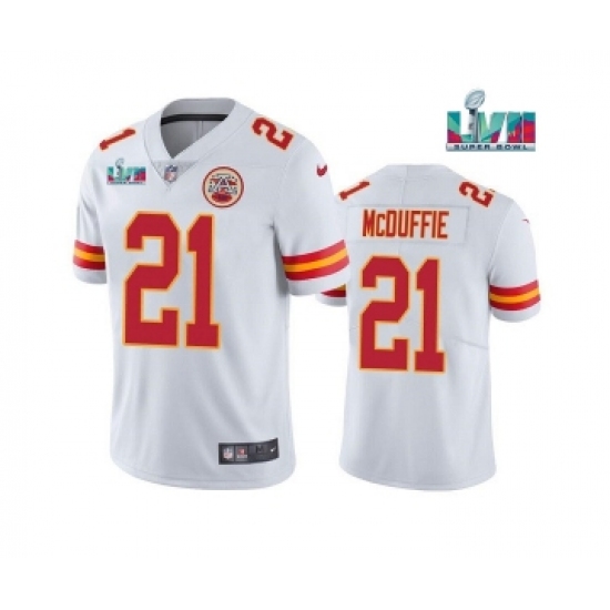 >Men's Kansas City Chiefs #21 Trent McDuffie White Super Bowl LVII Patch Vapor Untouchable Limited Stitched Jersey
