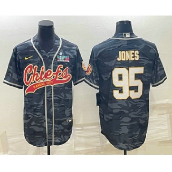 Men's Kansas City Chiefs #95 Chris Jones Grey Camo With Super Bowl LVII Patch Cool Base Stitched Baseball Jersey