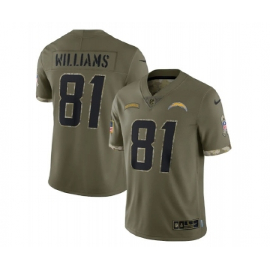 >Men's Los Angeles Chargers #81 Mike Williams 2022 Olive Salute To Service Limited Stitched Jersey