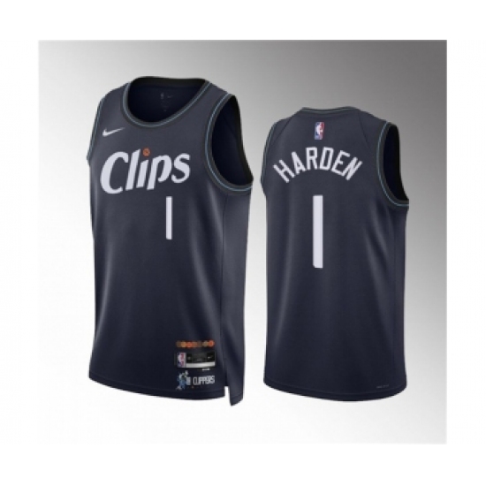 >Men's Los Angeles Clippers #1 James Harden Navy 2023-24 City Edition Stitched Jersey
