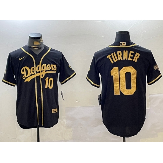Men's Nike Los Angeles Dodgers #10 Justin Turner Black Gold Authentic Jersey