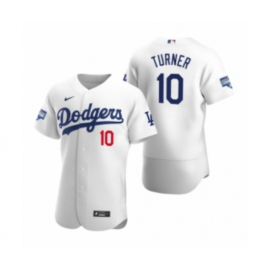 Men's Los Angeles Dodgers #10 Justin Turner White 2020 World Series Champions Authentic Jersey