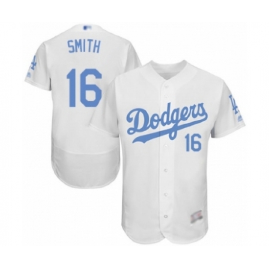 >Men's Los Angeles Dodgers #16 Will Smith Authentic White 2016 Father's Day Fashion Flex Base Baseball Player Jersey