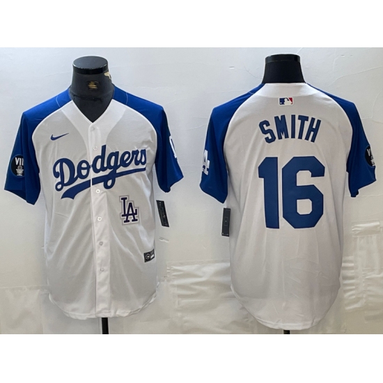 >Men's Los Angeles Dodgers #16 Will Smith White Blue Fashion Stitched Cool Base Limited Jerseys