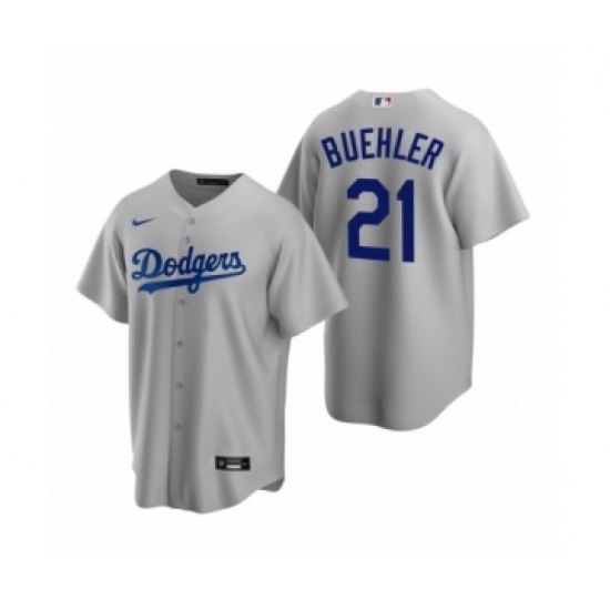 Men's Nike Los Angeles Dodgers #21 Walker Buehler Gray Road Stitched Baseball Jersey