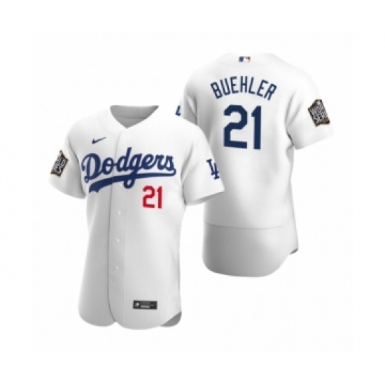 >Men's Los Angeles Dodgers #21 Walker Buehler Nike White 2020 World Series Authentic Jersey