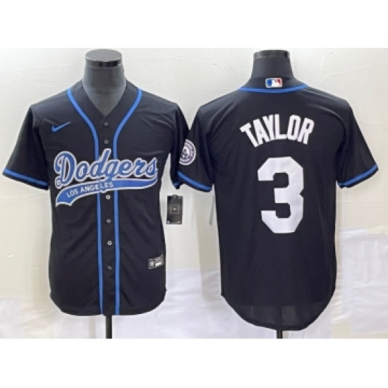 Men's Los Angeles Dodgers #3 Chris Taylor Black Cool Base Stitched Baseball Jersey1