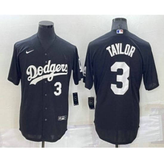 Men's Los Angeles Dodgers #3 Chris Taylor Number Black Cool Base Stitched Baseball Jersey