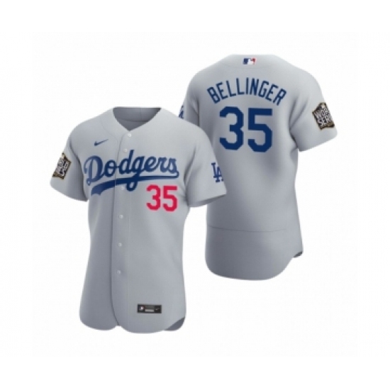 Men's Los Angeles Dodgers #35 Cody Bellinger Gray 2020 World Series Champions Road Authentic Jersey
