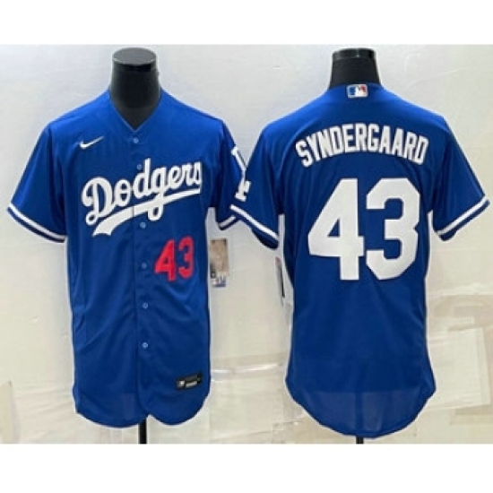 Men's Los Angeles Dodgers #43 Noah Syndergaard Number Blue Stitched MLB Flex Base Nike Jersey