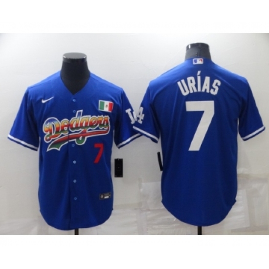 Men's Los Angeles Dodgers #7 Julio Urias Blue With Red Stitched MLB Cool Base Nike Fashion Jersey