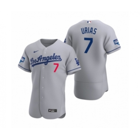 Men's Los Angeles Dodgers #7 Julio Urias Gray 2020 World Series Champions Road Authentic Jersey
