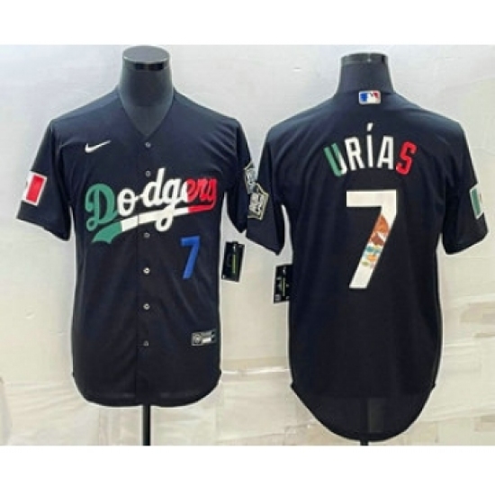 >Mens Los Angeles Dodgers #7 Julio Urias Number Black Mexico 2020 World Series Cool Base Nike Jersey