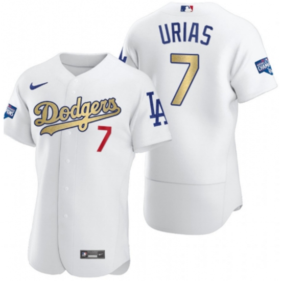 Men's Los Angeles Dodgers #7 Julio Urias White 2020 World Series Champions Authentic Jersey
