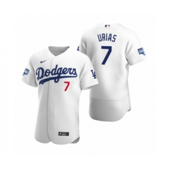 Men's Los Angeles Dodgers #7 Julio Urias White 2020 World Series Champions Authentic Jersey