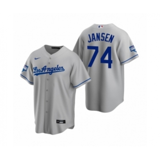 >Men's Los Angeles Dodgers #74 Kenley Jansen Gray 2020 World Series Champions Road Replica Jersey