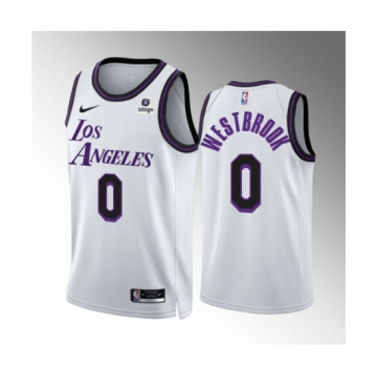 Men's Los Angeles Lakers #0 Russell Westbrook White City Edition Stitched Basketball Jersey